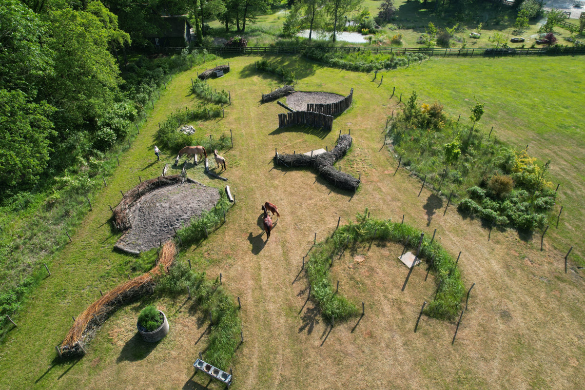 Blatter, Zweige und Weidenzweige werden regelmäßig hinzugefügt, um das Knabbern anzuregen, was auch zur natürlichen Zahnpflege beiträgt. Ebenso wie die Pflastersteine, die vor dem Paddock verlegt wurden, um die Durchblutung, eine starke Hornhaut und einen gleichmäßigen Abrieb zu fördern.
